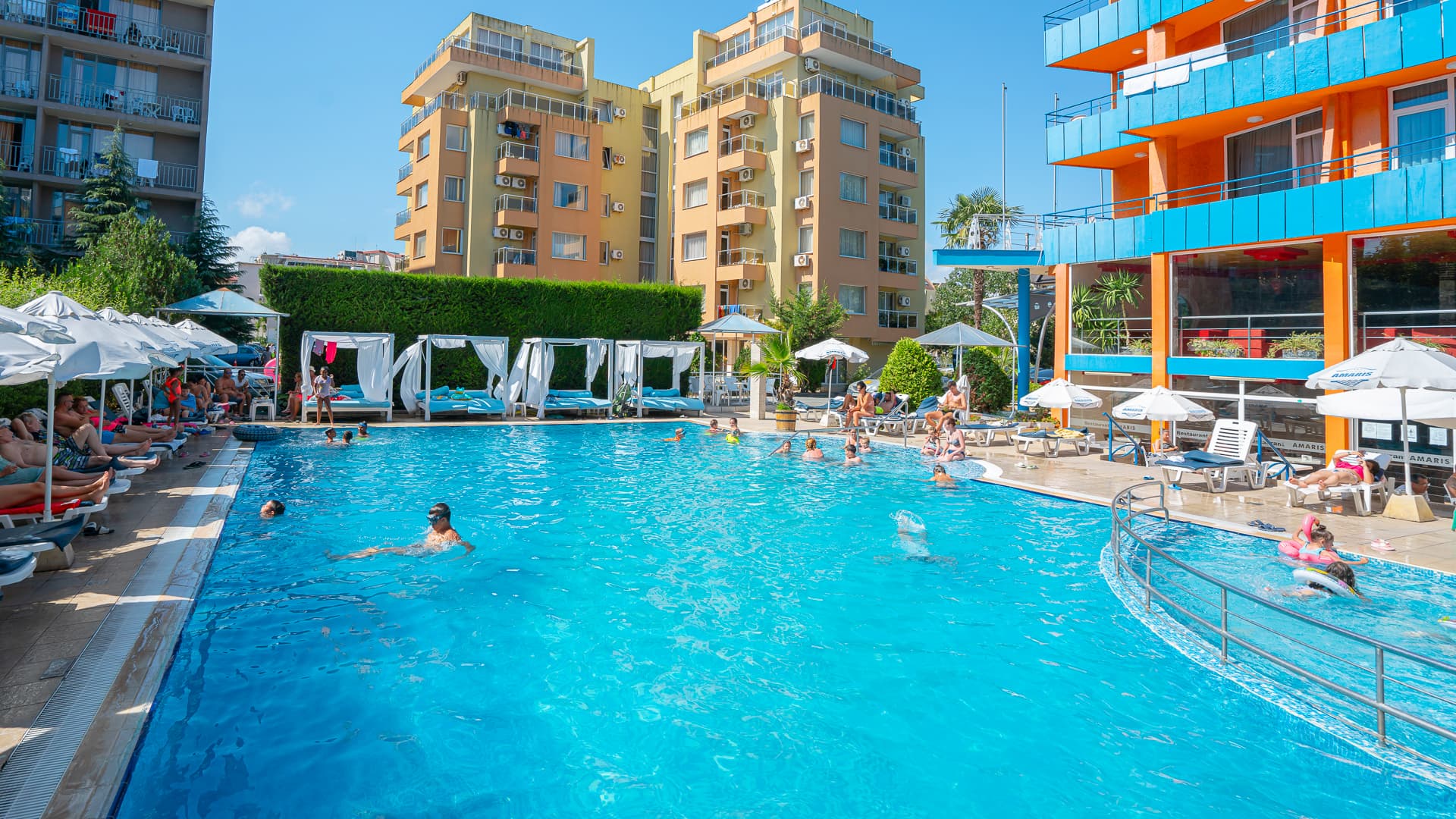 Ungdomshotel Amaris er et moderne og stilfuldt hotel i hjertet af Sunny Beach – perfekt til unge, der vil have en nem og lækker ferie med All-Inclusive inkluderet. Du bor tæt på strand, barer og natteliv, og stemningen på hotellet er ungdommelig med fokus på fællesskab og gode oplevelser.