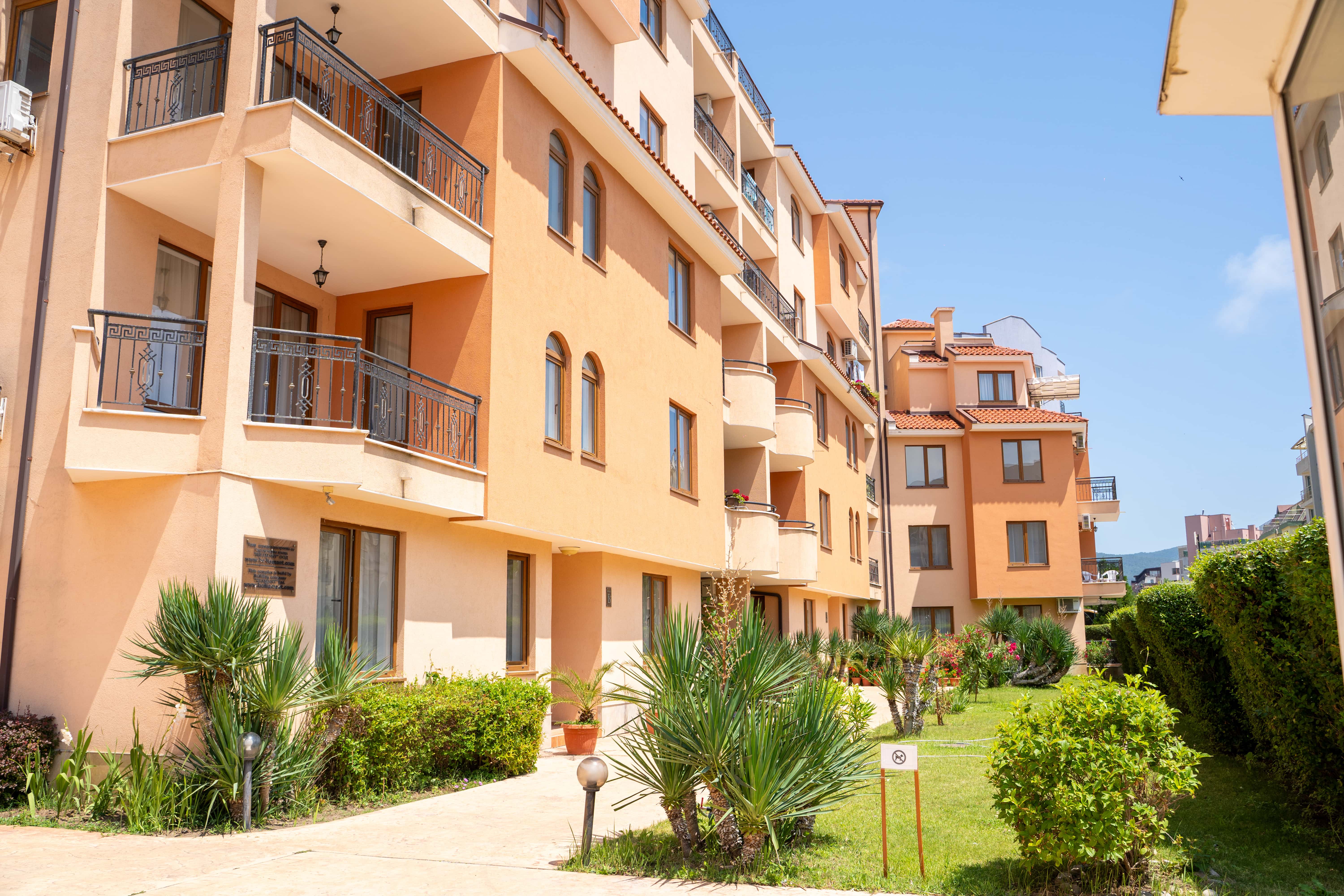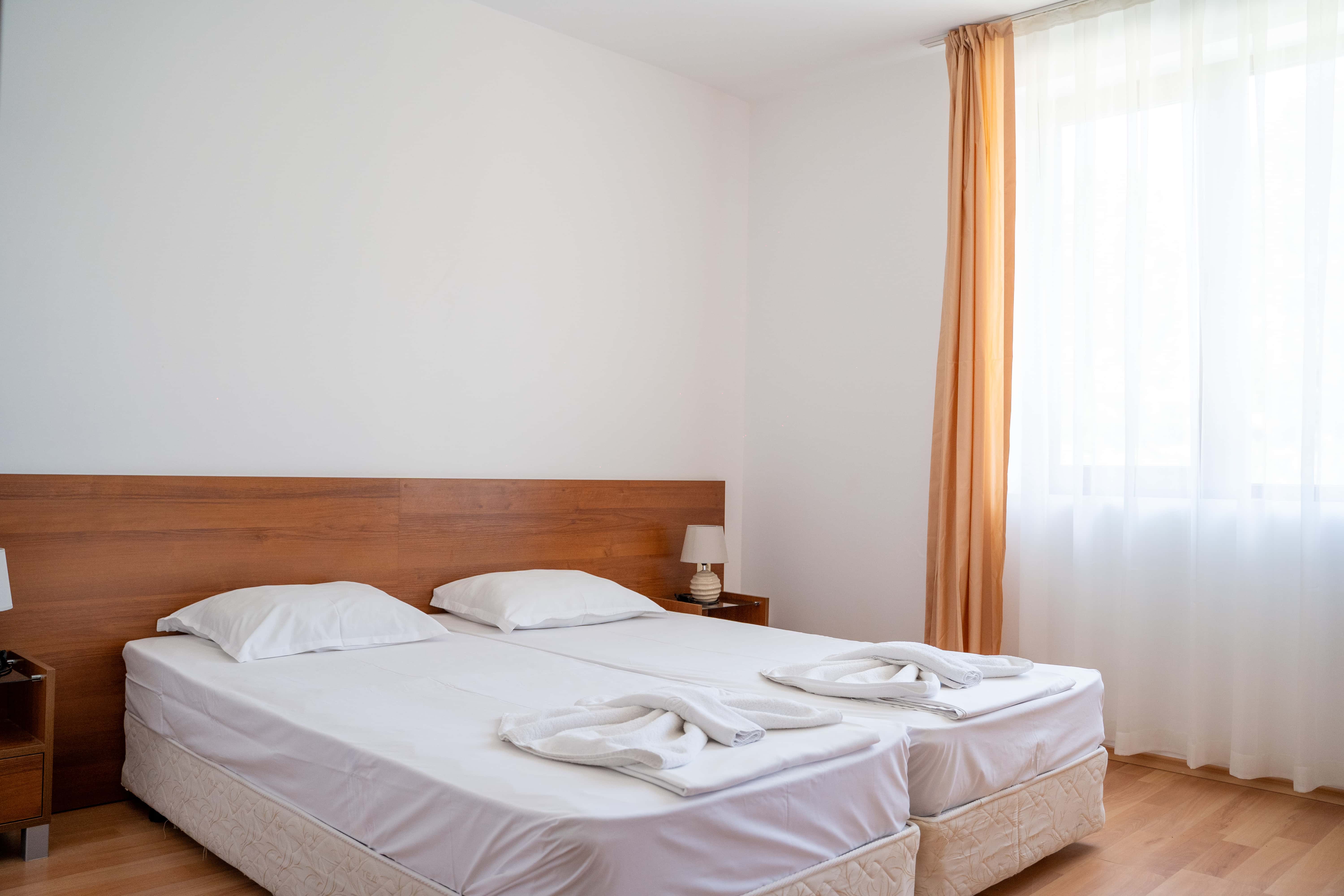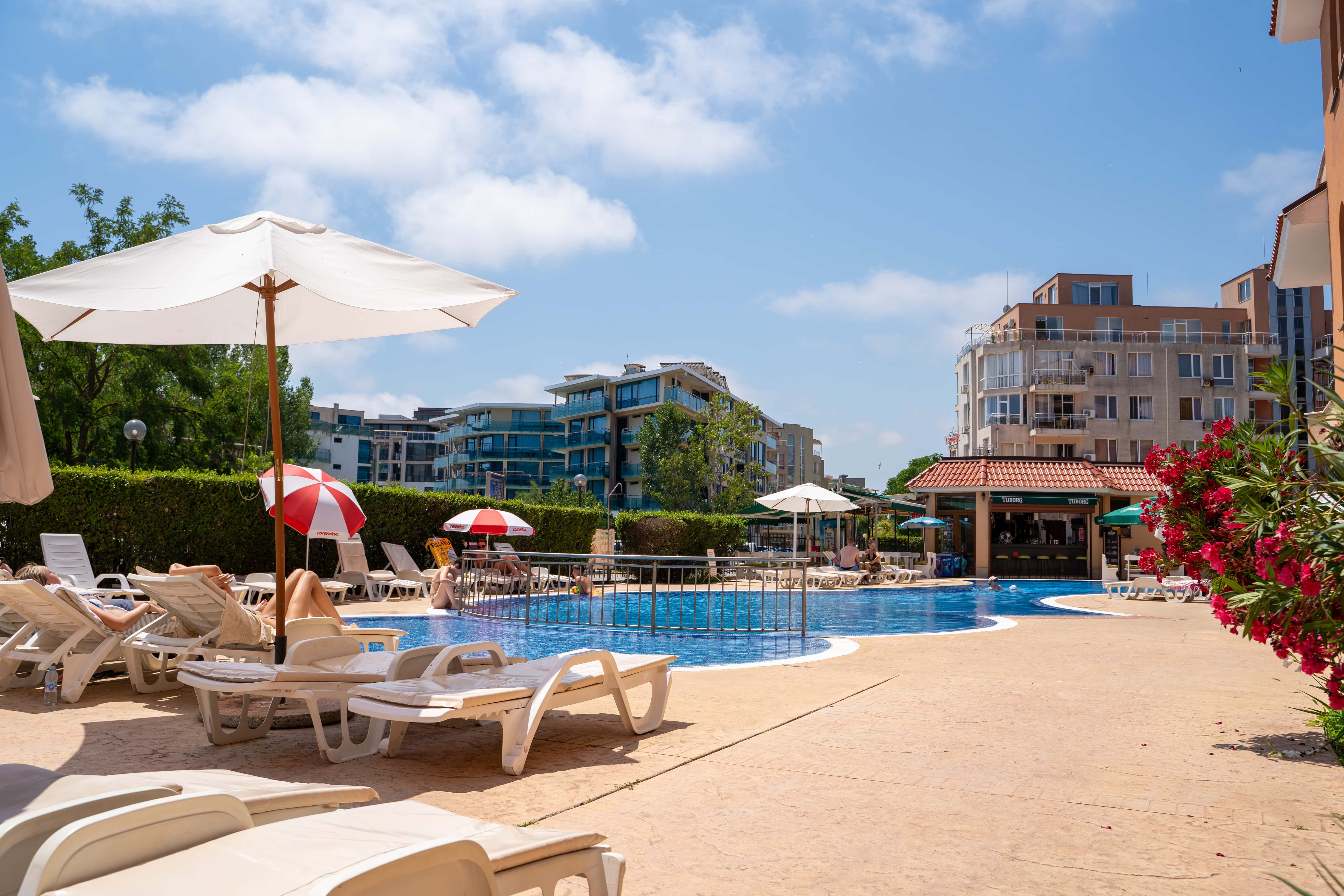 Hotellet ligger i et roligt område af Sunny Beach, men stadig kun 10–15 minutters gang fra stranden, Flower Street og byens livlige restauranter og barer. I nærområdet finder du også Sunny Beach’ største vandland samt en grøn park med grillpladser og boldbaner – ideelt til en afslappende dag tæt på hotellet. Vil du ind til byens centrum, kan du nemt tage en kort gåtur eller en billig taxa.