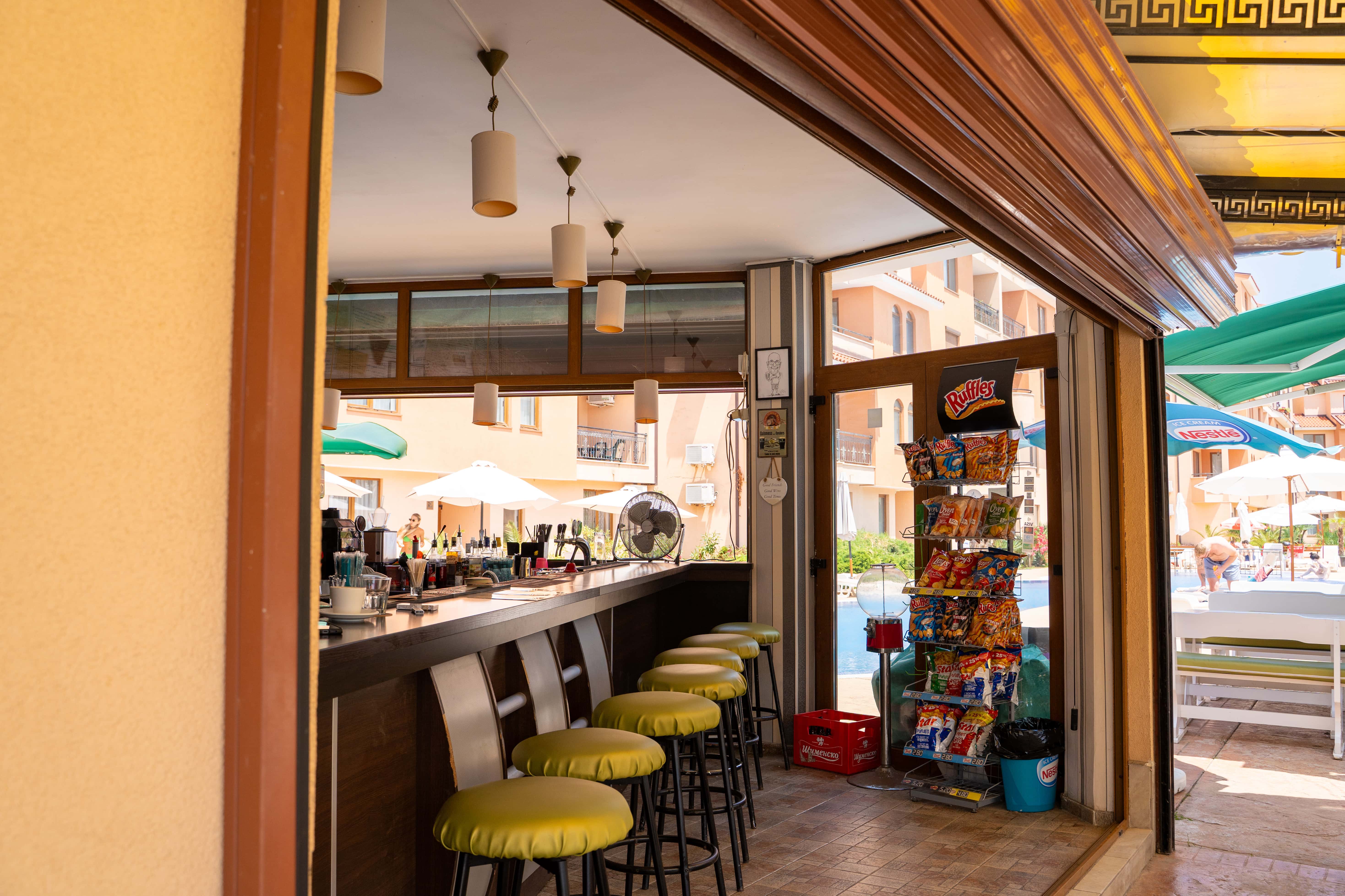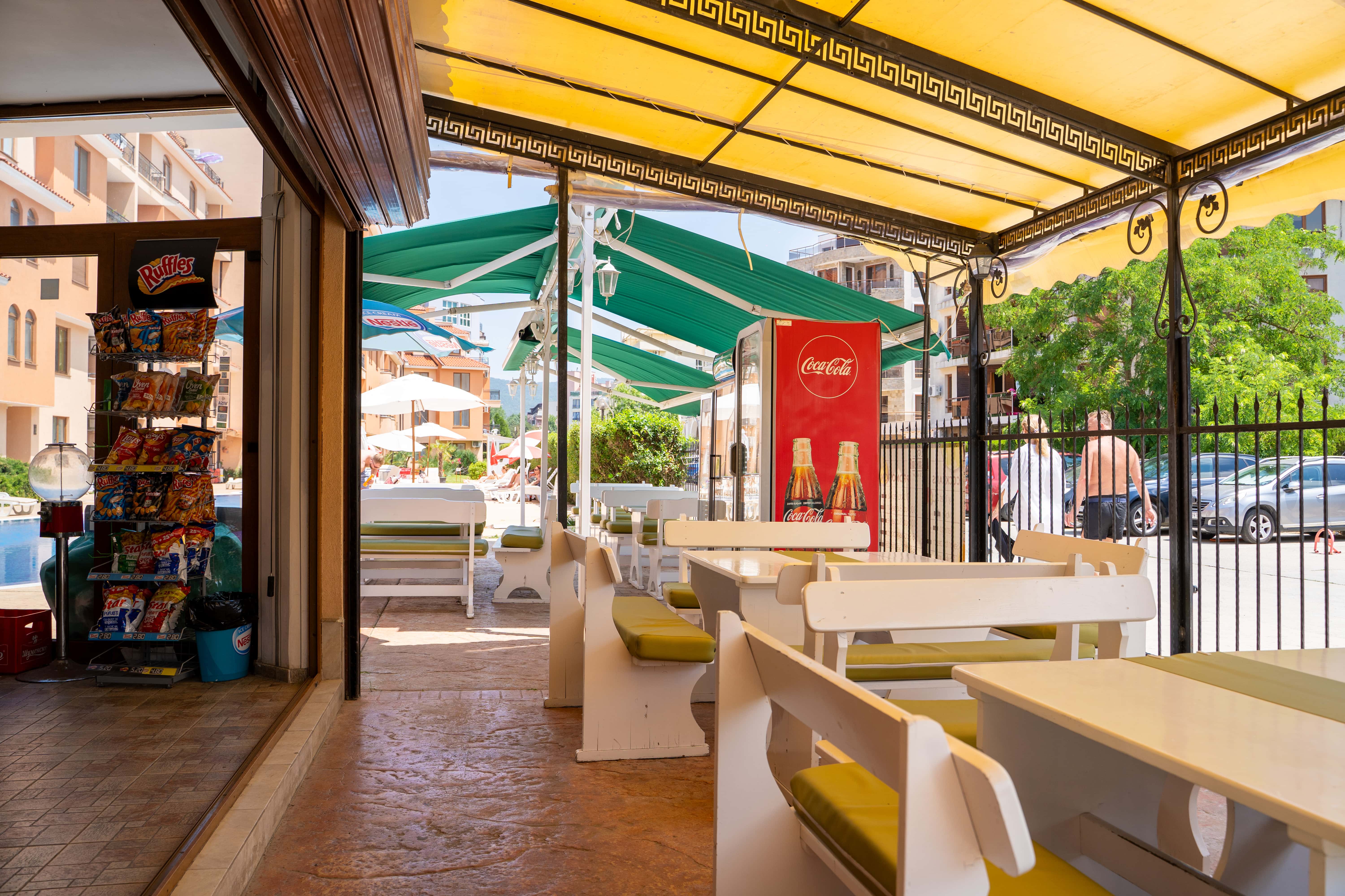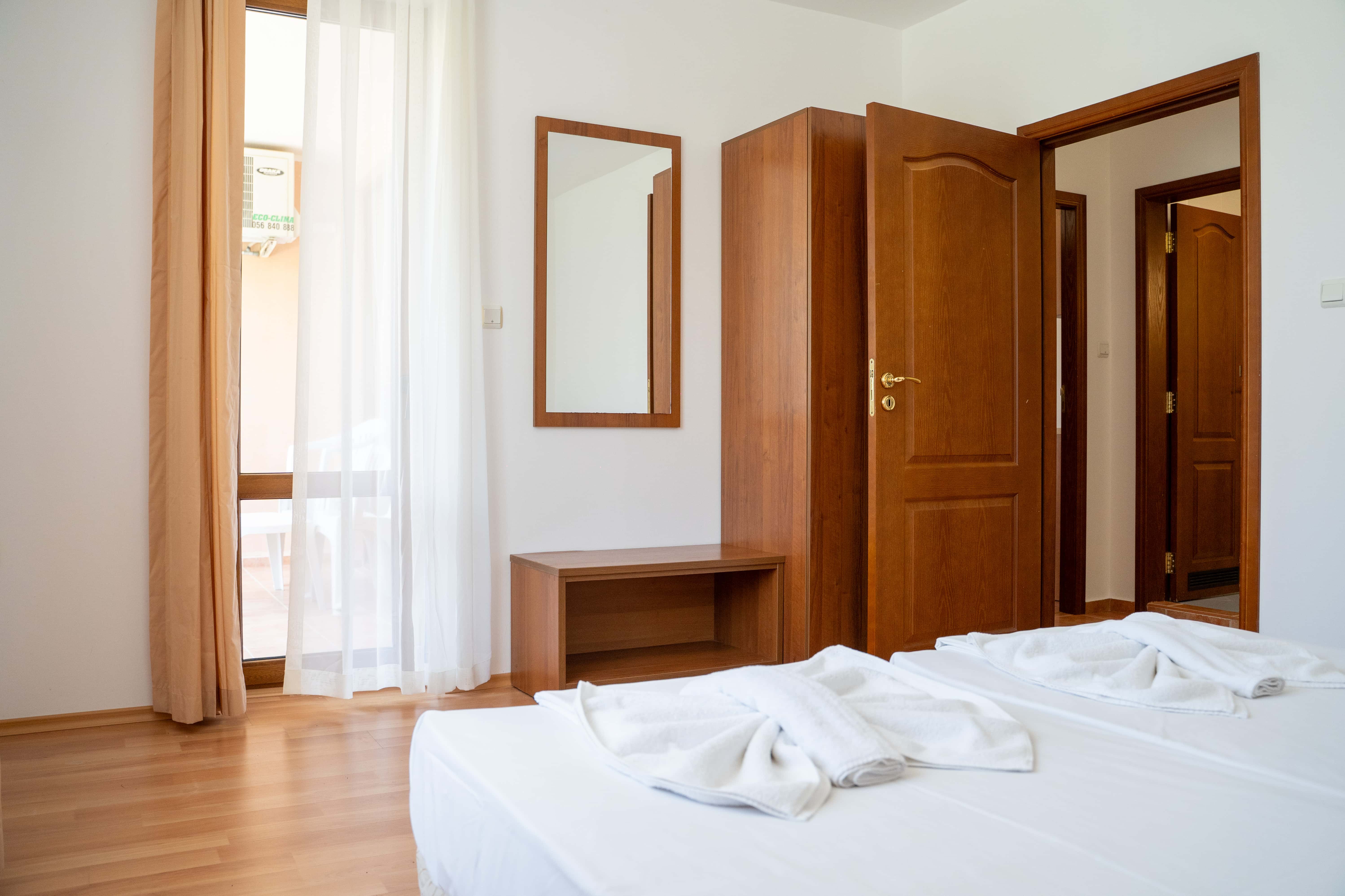 Hotellet ligger i et roligt område af Sunny Beach, men stadig kun 10–15 minutters gang fra stranden, Flower Street og byens livlige restauranter og barer. I nærområdet finder du også Sunny Beach’ største vandland samt en grøn park med grillpladser og boldbaner – ideelt til en afslappende dag tæt på hotellet. Vil du ind til byens centrum, kan du nemt tage en kort gåtur eller en billig taxa.