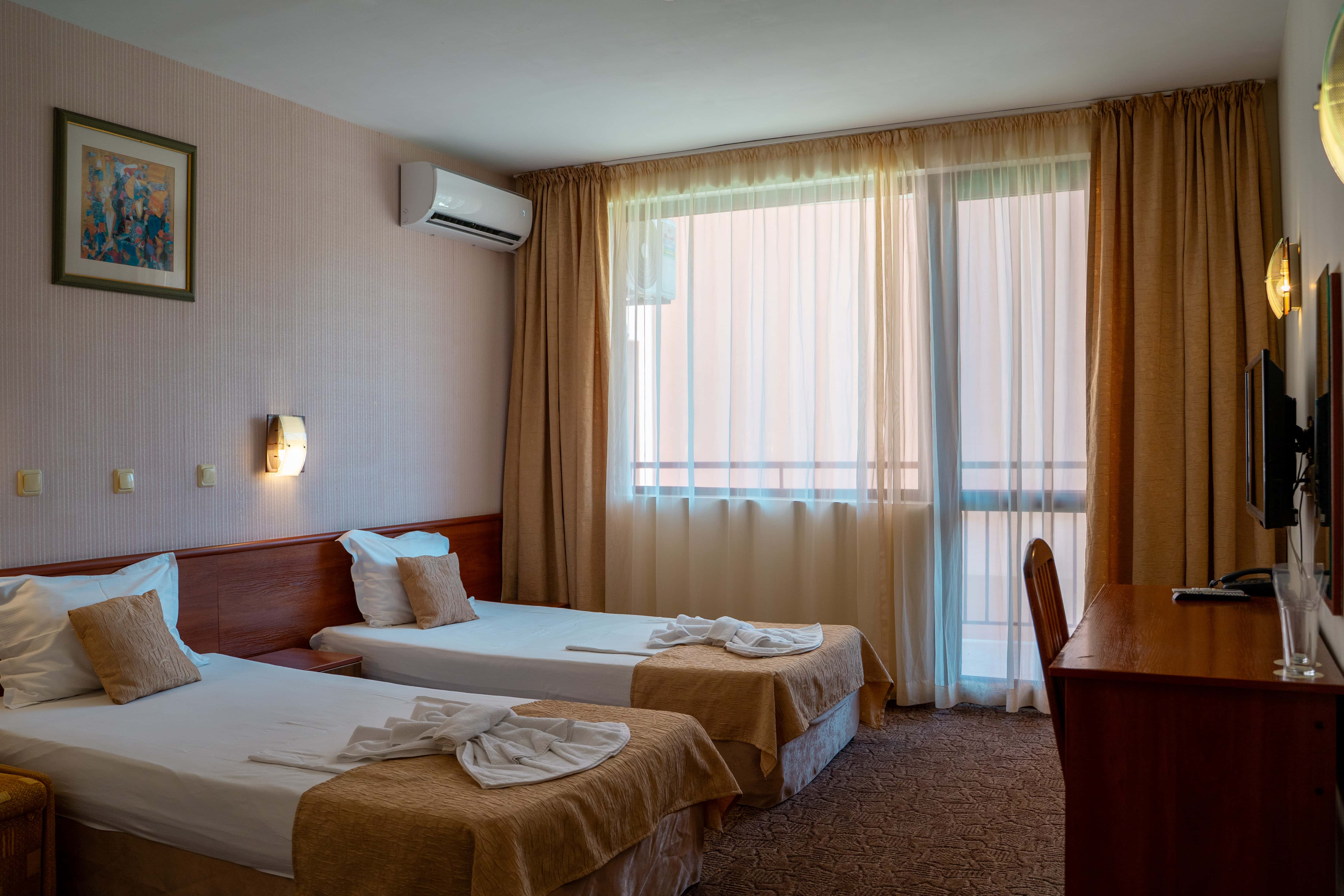 Izola Paradise tilbyder lyse og komfortable dobbeltværelser med plads til 2–3 personer. Alle værelser har balkon, badeværelse med toilet og bruser samt gratis aircondition. Enkle og funktionelle rammer til dig, der ønsker en ferie med både komfort og en central beliggenhed.