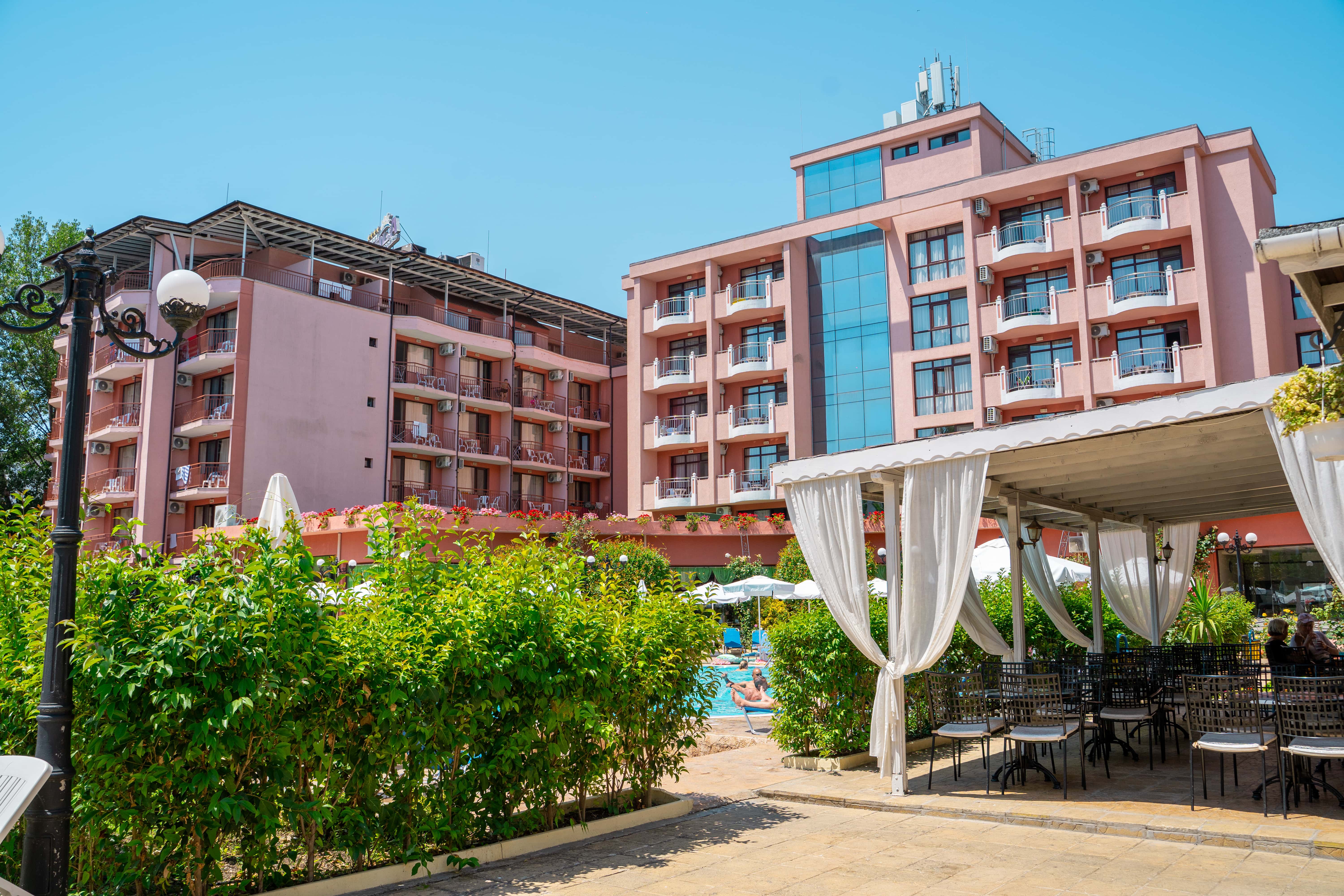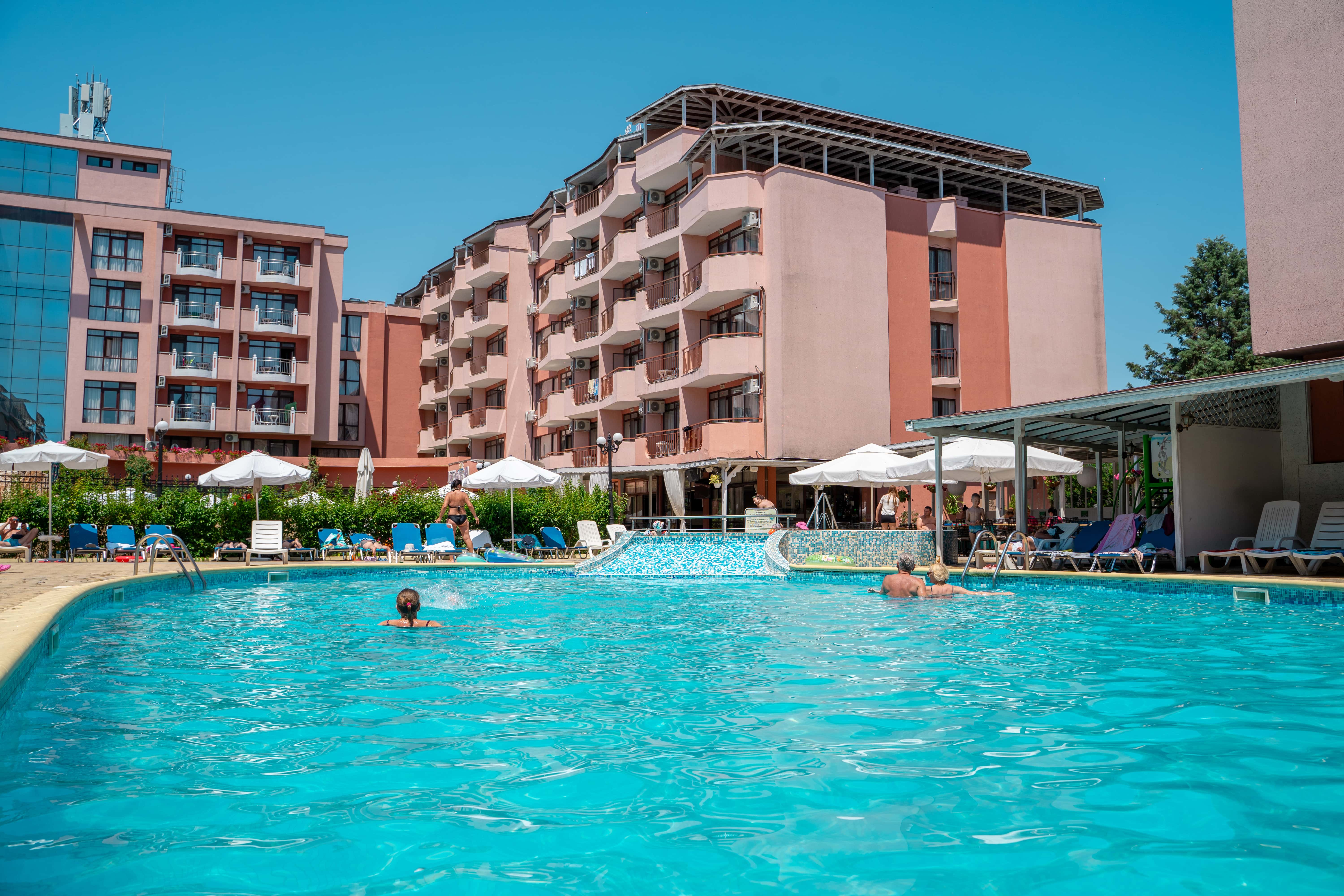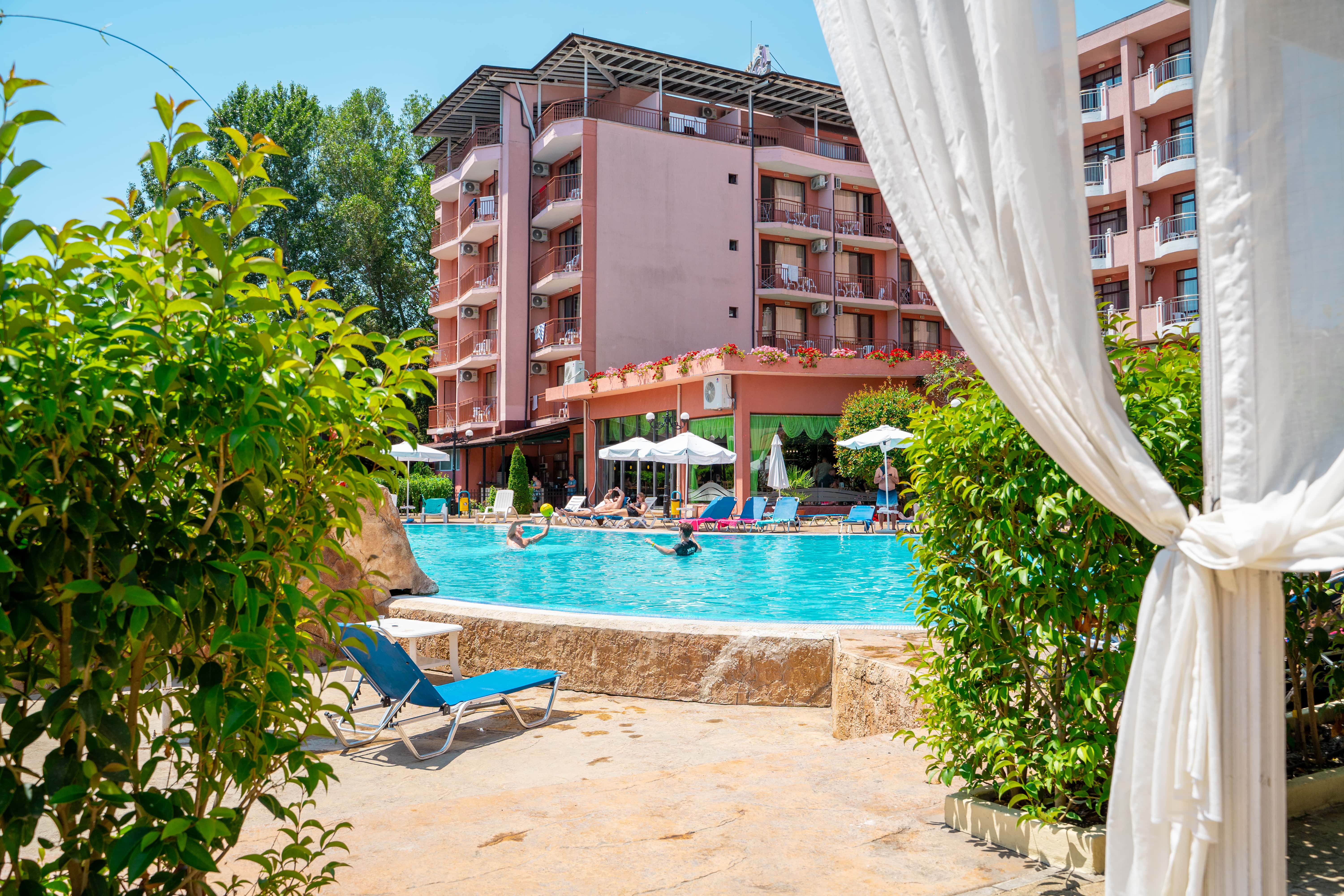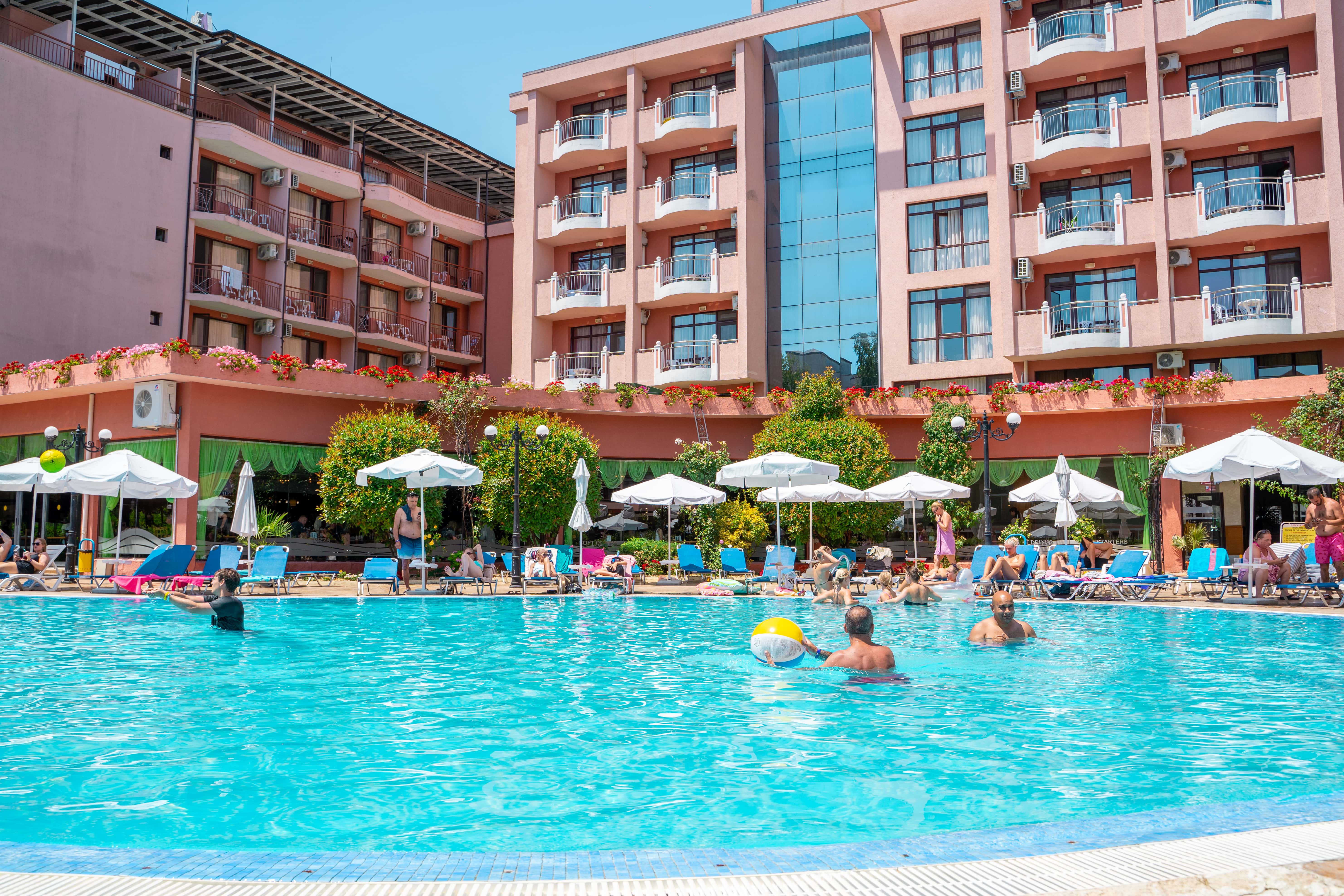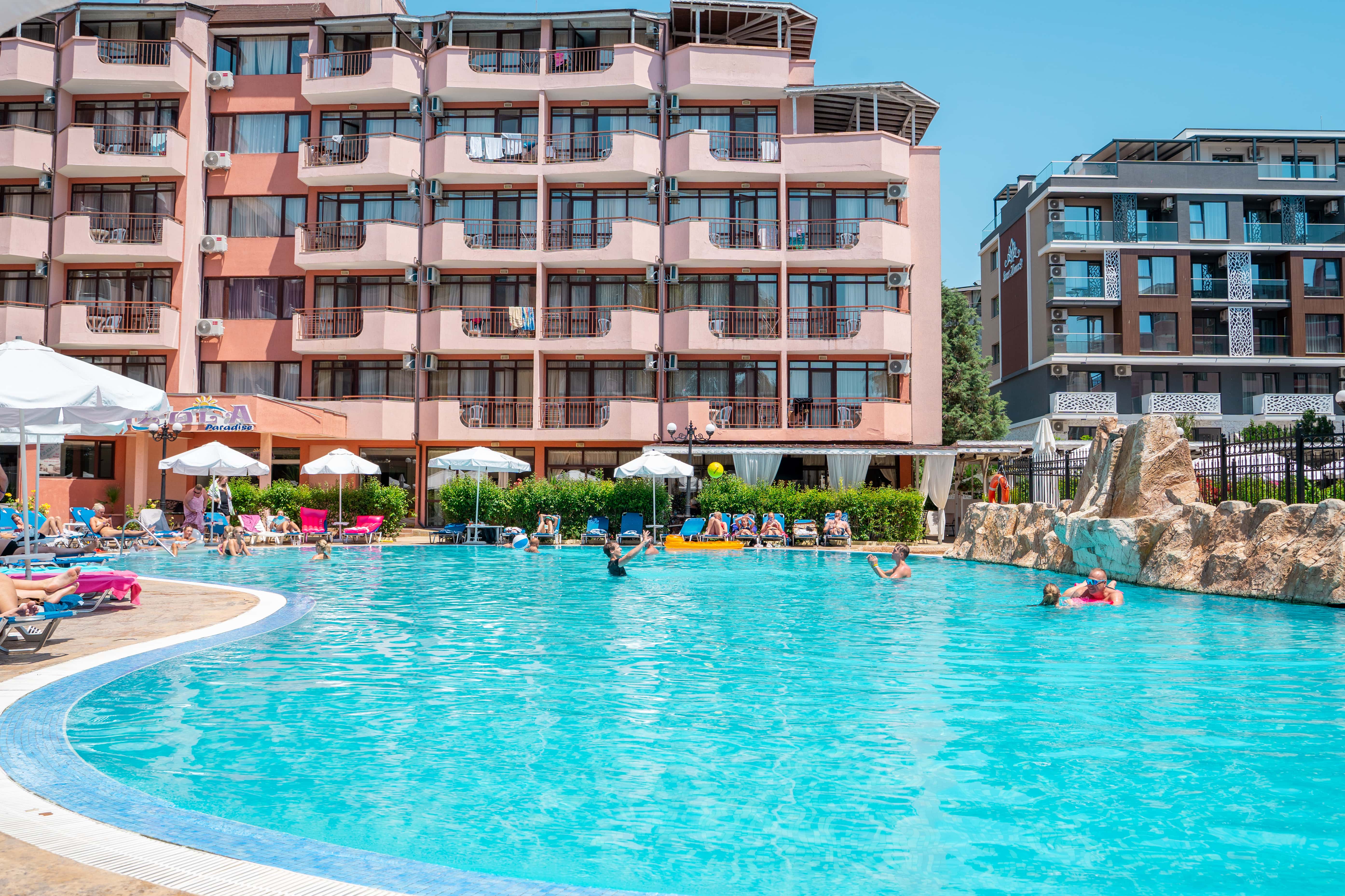 Izola Paradise er et populært og moderne hotel med fantastisk beliggenhed i hjertet af Sunny Beach. Her bor du i gåafstand til både strand, shopping og Flower Street – byen hvor barer, restauranter og underholdning ligger side om side. Hotellet er et af Uptours’ mest efterspurgte i Sunny Beach og et oplagt valg for dig, der ønsker en ferie med god stemning, sol og afslapning tæt på alt.
