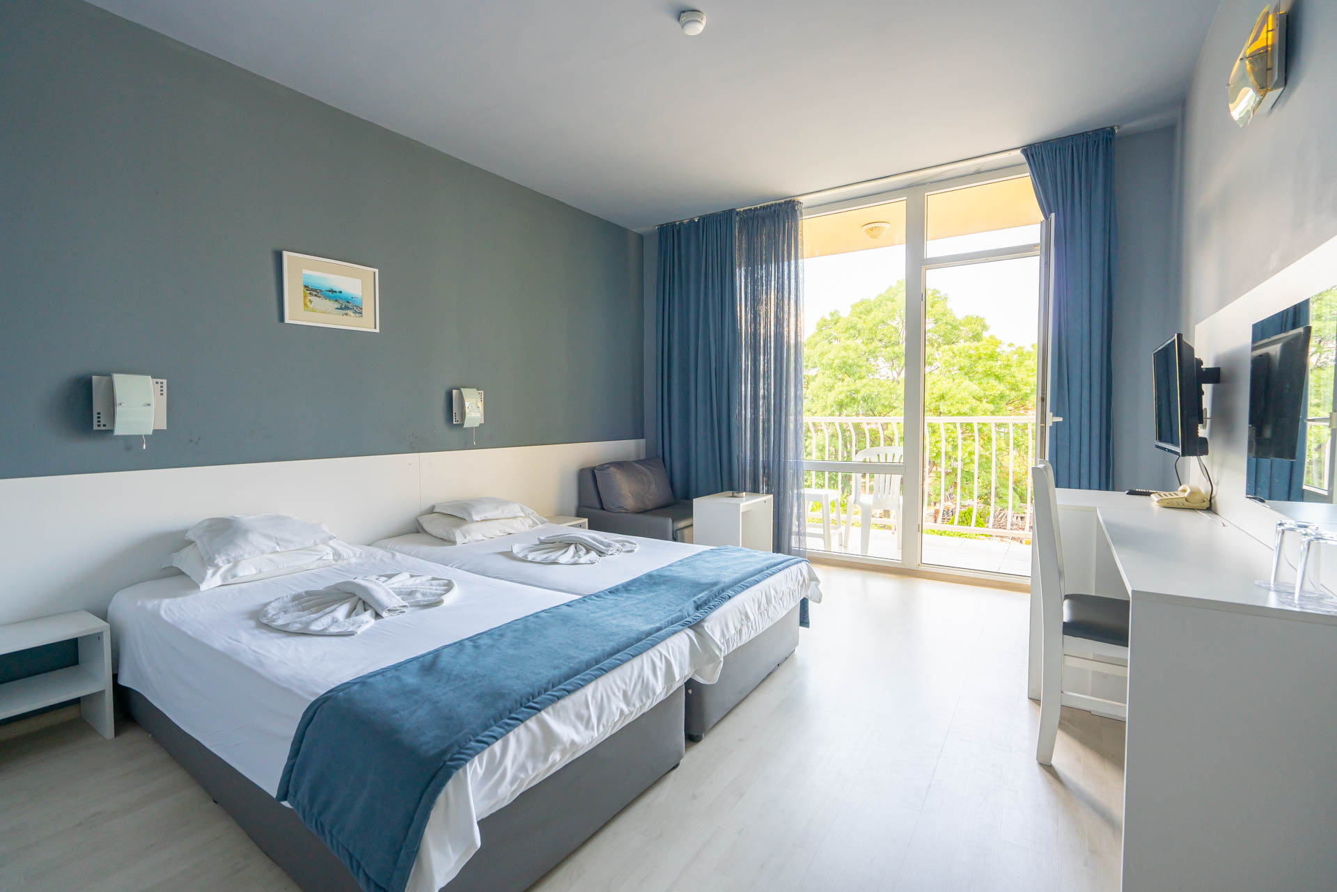 Værelserne på Hotel Sun Palace er lyse, rummelige og indrettet i en moderne stil. De blev fornyet for få år siden og lever op til høj standard. Alle værelser har aircondition, balkon, TV, køleskab og eget badeværelse. Der er plads til 2–3 personer pr. værelse, og ekstra senge kan være sovesofa eller udtræksstol.