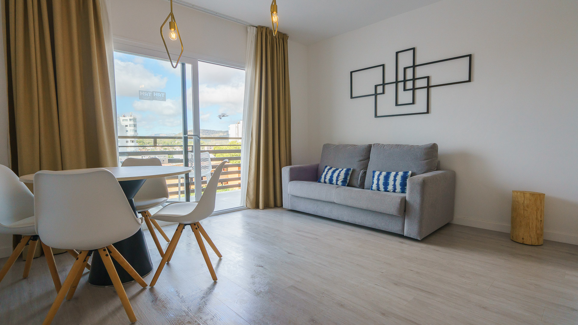 Studios på TRH Suites Magaluf har plads til 4 personer, hvor man kan bo 2-4 personer. Studios er totalt nyrenoveret og er både rumlige, stilrent indrettede og har praktisk skabsplads til tøj og medbragt bagage. Alle værelser har et lille køleskab, badeværelse og et stort hverdagsrum. Alle studios har desuden egen balkon med tilhørende borde og stole, hvor du kan nyde den varme sommerbrise samtidigt med du sipper af en kølig forfriskning. Bemærk, at der tilkommer tomsengstillæg, hvis ikke man fylder værelset med 4 personer.